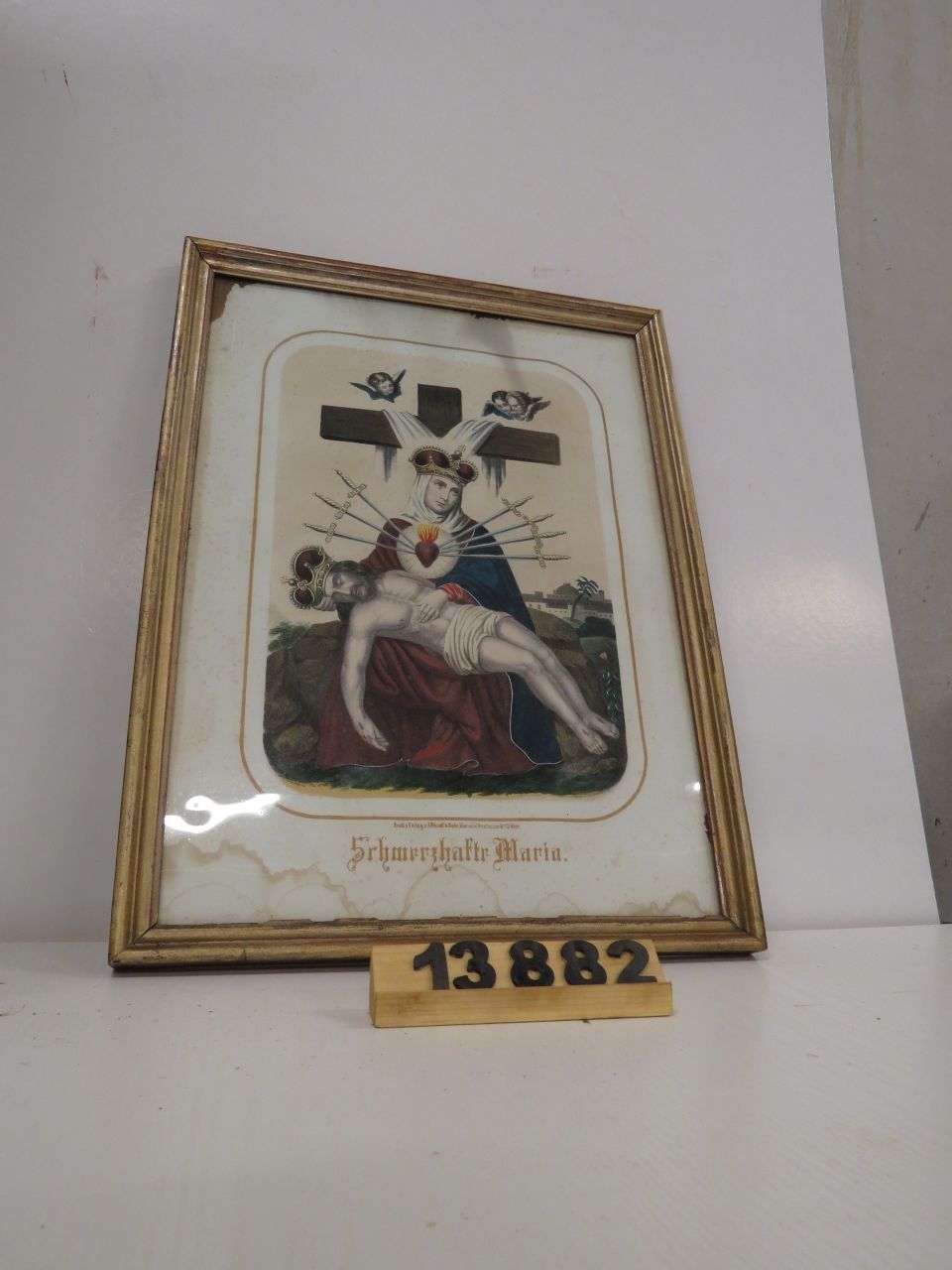 Herz Marien Darstellung; in dunkelbraunem geschnitztem Rahmen