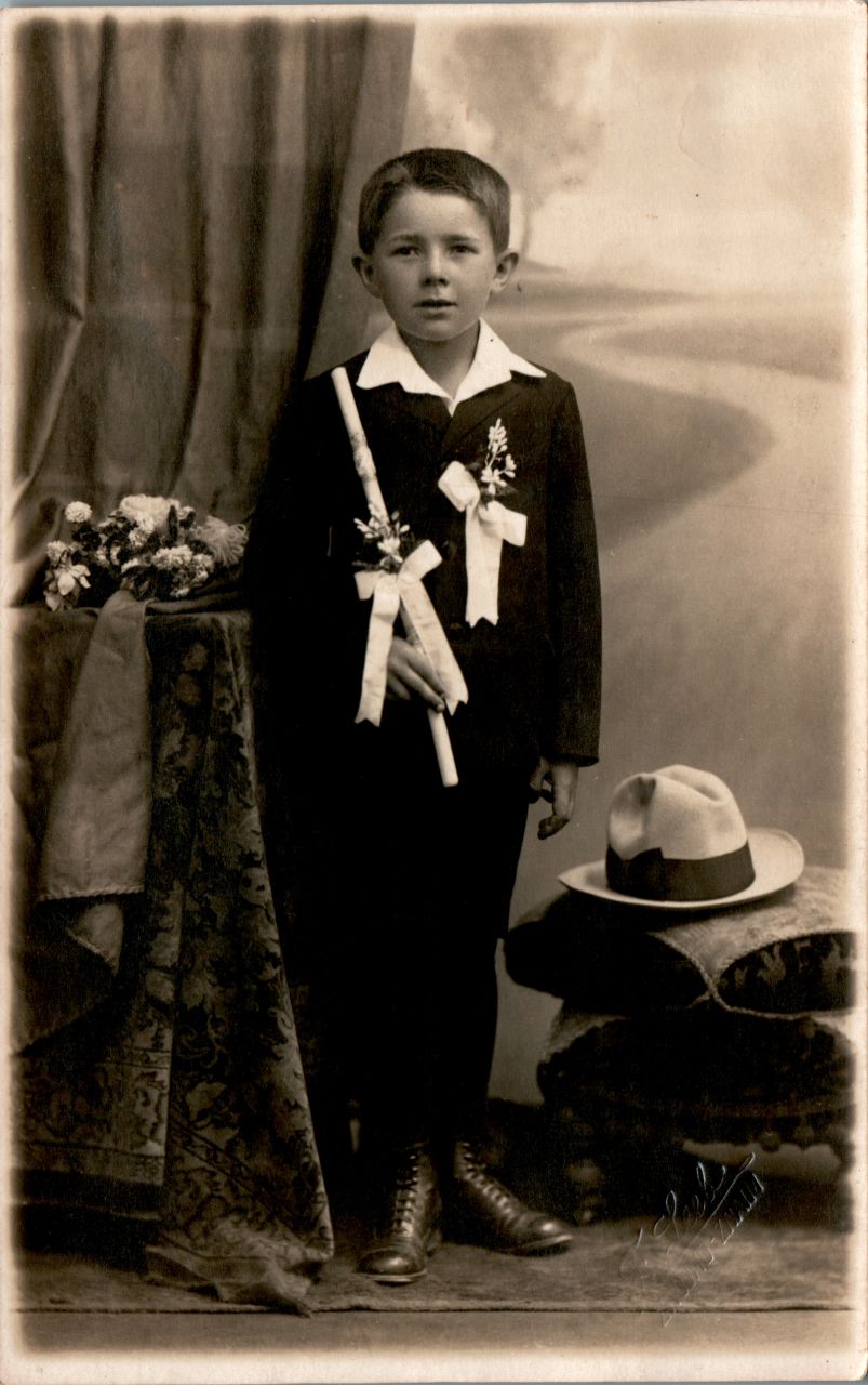 s/w Teilfotokopie einer Mehrbildkarte (Ansichtskarte); Rückseite: handschriftliche Vermerke des Sammlers (Nummerierungen, Ortsname und den Verlag des Originals)