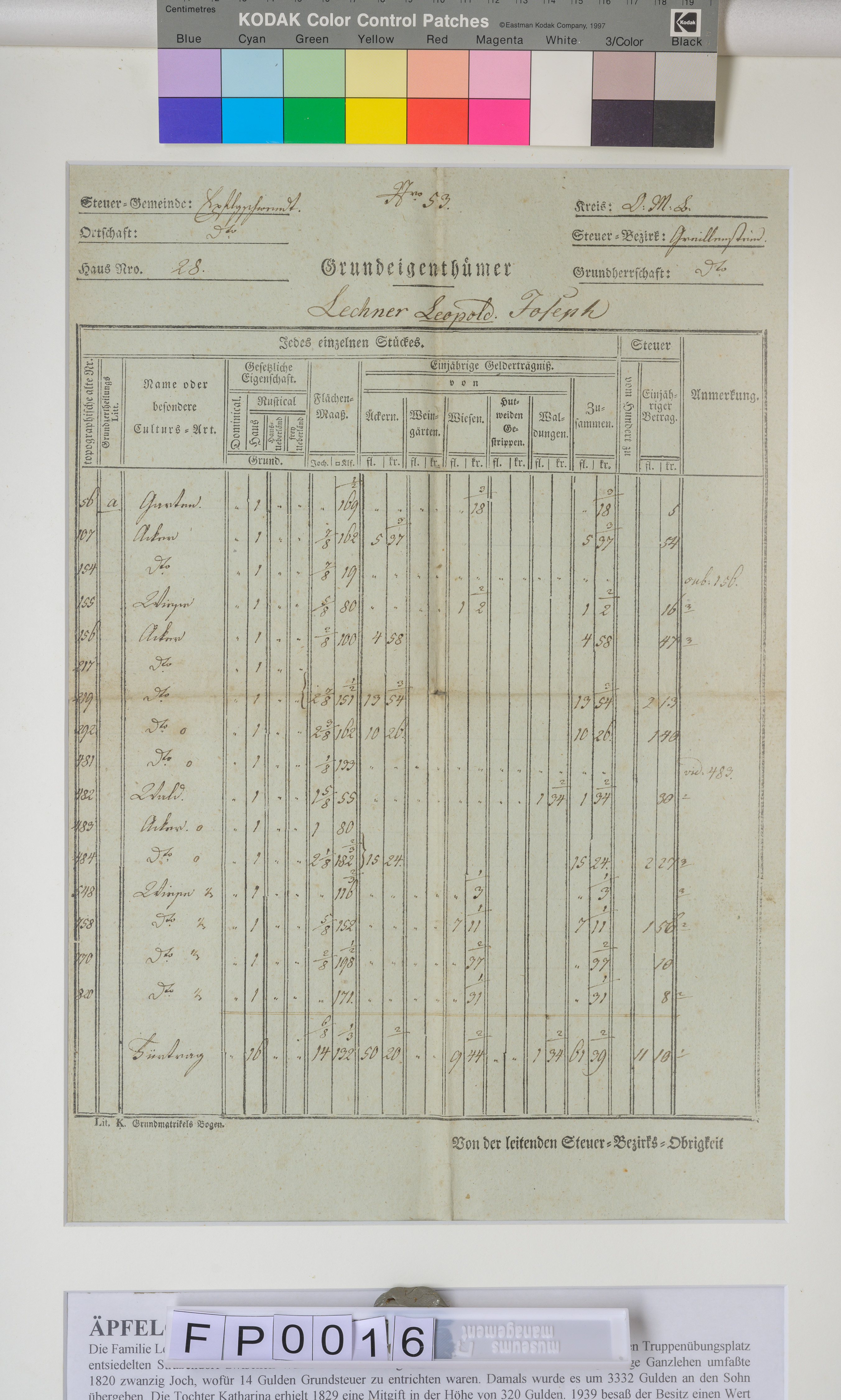 Grundsteuerausweis Äpfelgschwendt Nr. 28; aus dem Jahr 1820; Herrschaft Greillenstein; 4 Seiten;