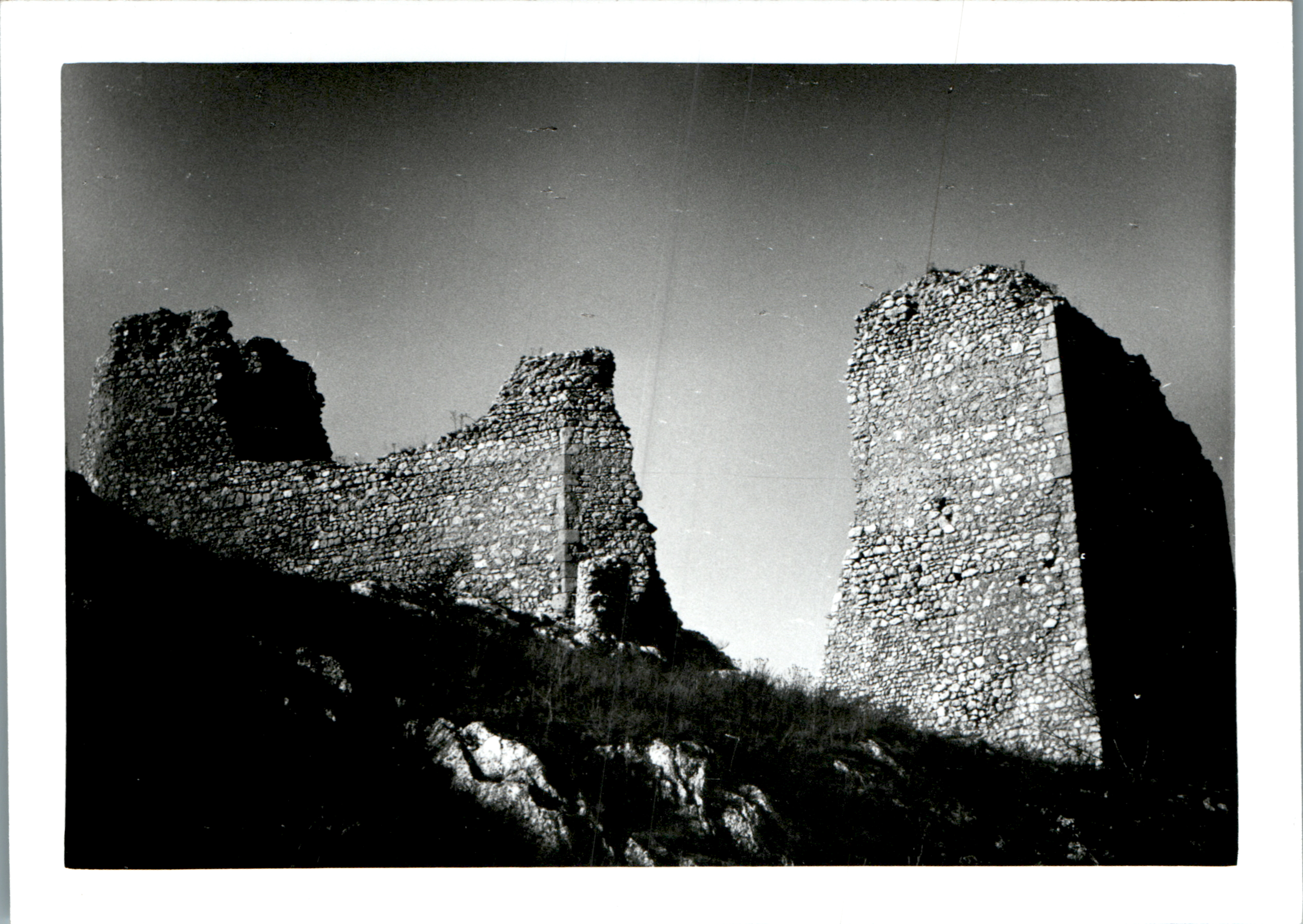 s/w Ansicht der Ruine von Burg Waisenstein (Tschechisch: Sirotčí hrádek, deutsch auch Burg Rosenstein, Rosenburg)