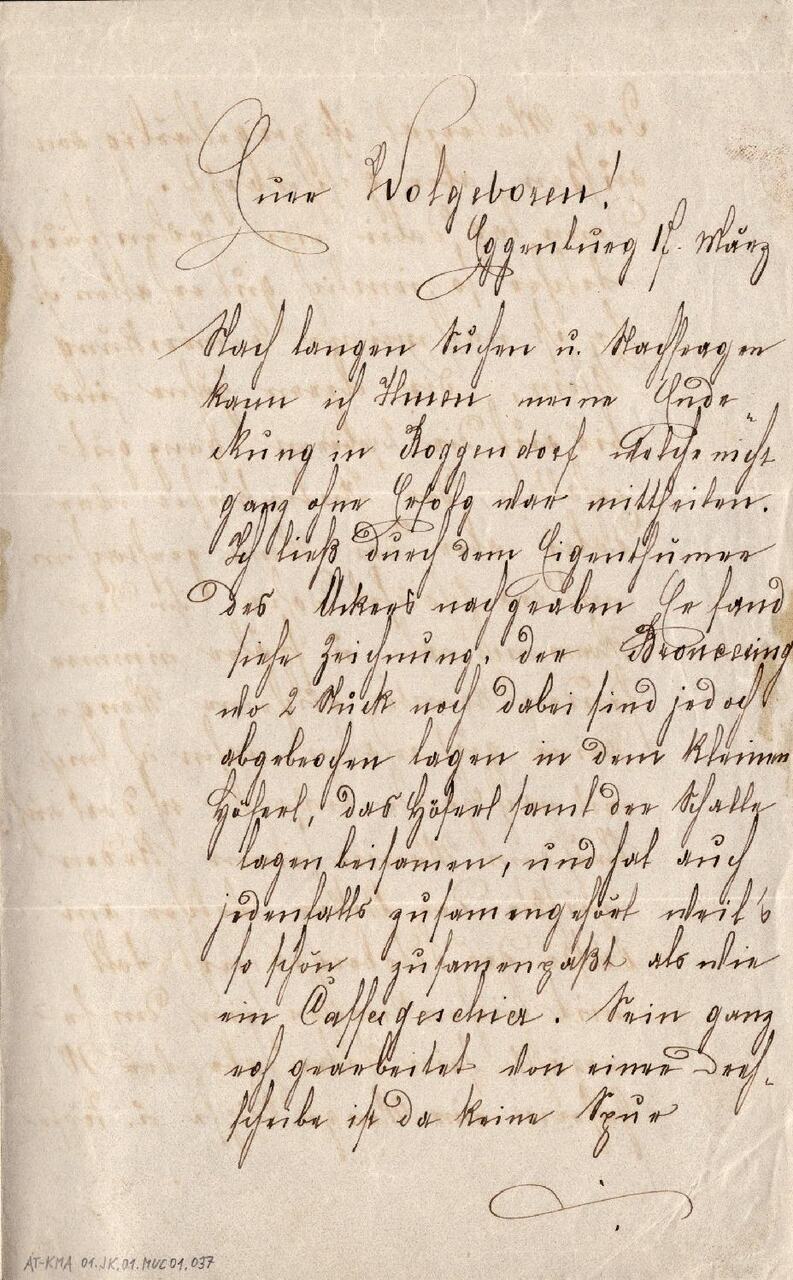 Brief von Johann Krahuletz an Matthäus Much, Eggenburg 17.03.[1876]