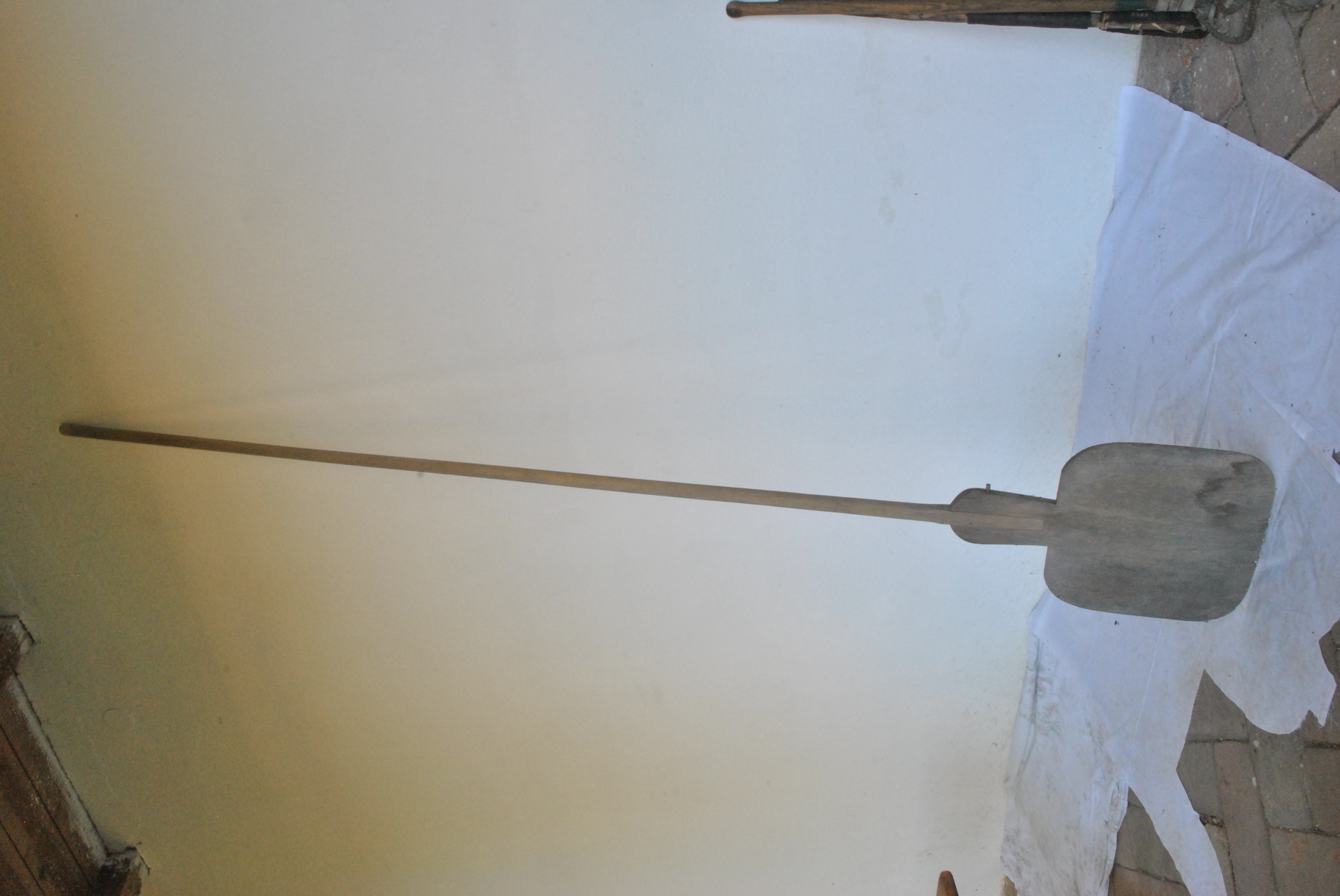 ganz flache Schaufel zum Einscheißen von Laiben in den Backofen, langer Stiel