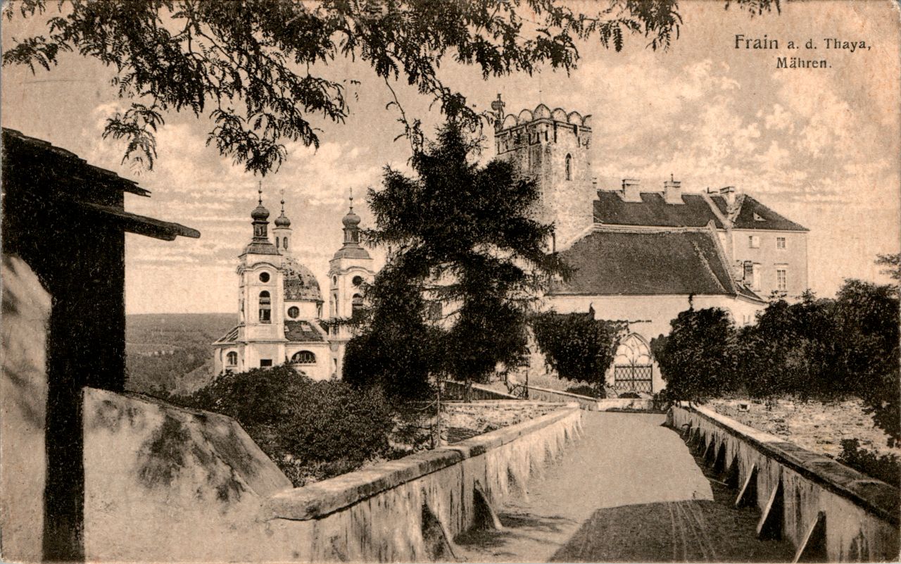 Ortname: Frain/Vranov nad Dyjí Vorderseite: Ansicht Schloss Rückseite: beschriftet mit Poststempel (Kaufdatum 5.10.81)