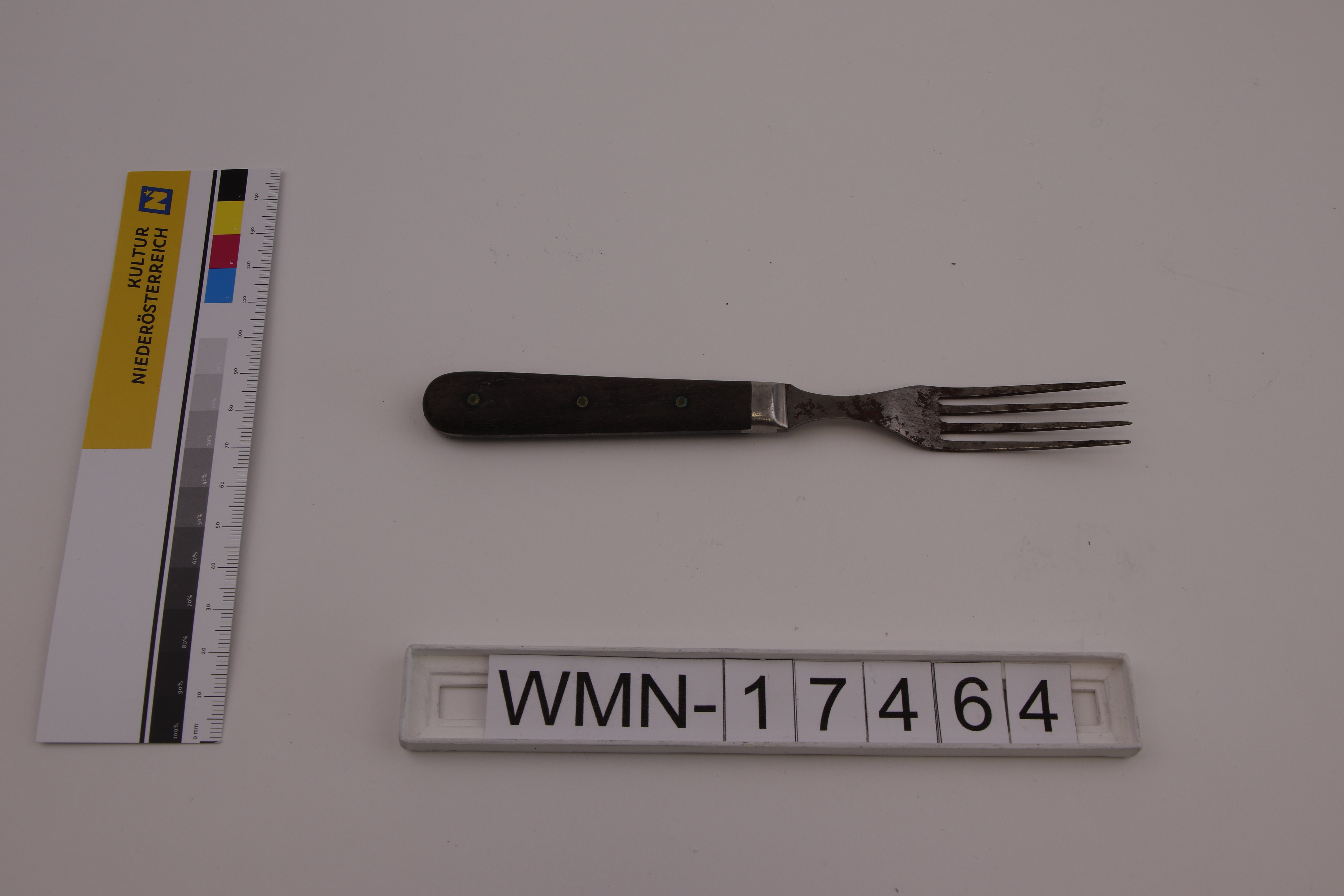 silberfarben; dunkelbraune, abgerundete, hölzerne Griffschalen und ein metallener hervorspringender Kehl