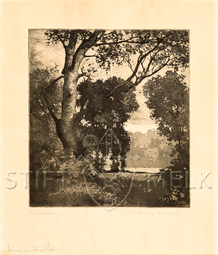 Signiert und datiert u. r.: "R. Kromar v Hohenwolf 03" Titel u. l.: "Motiv aus dem Wiener Prater"