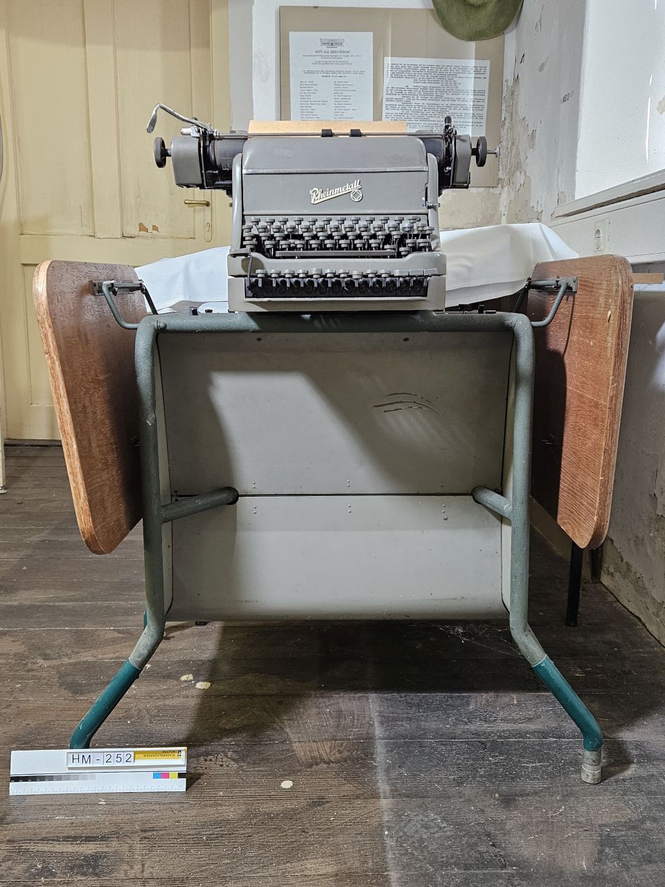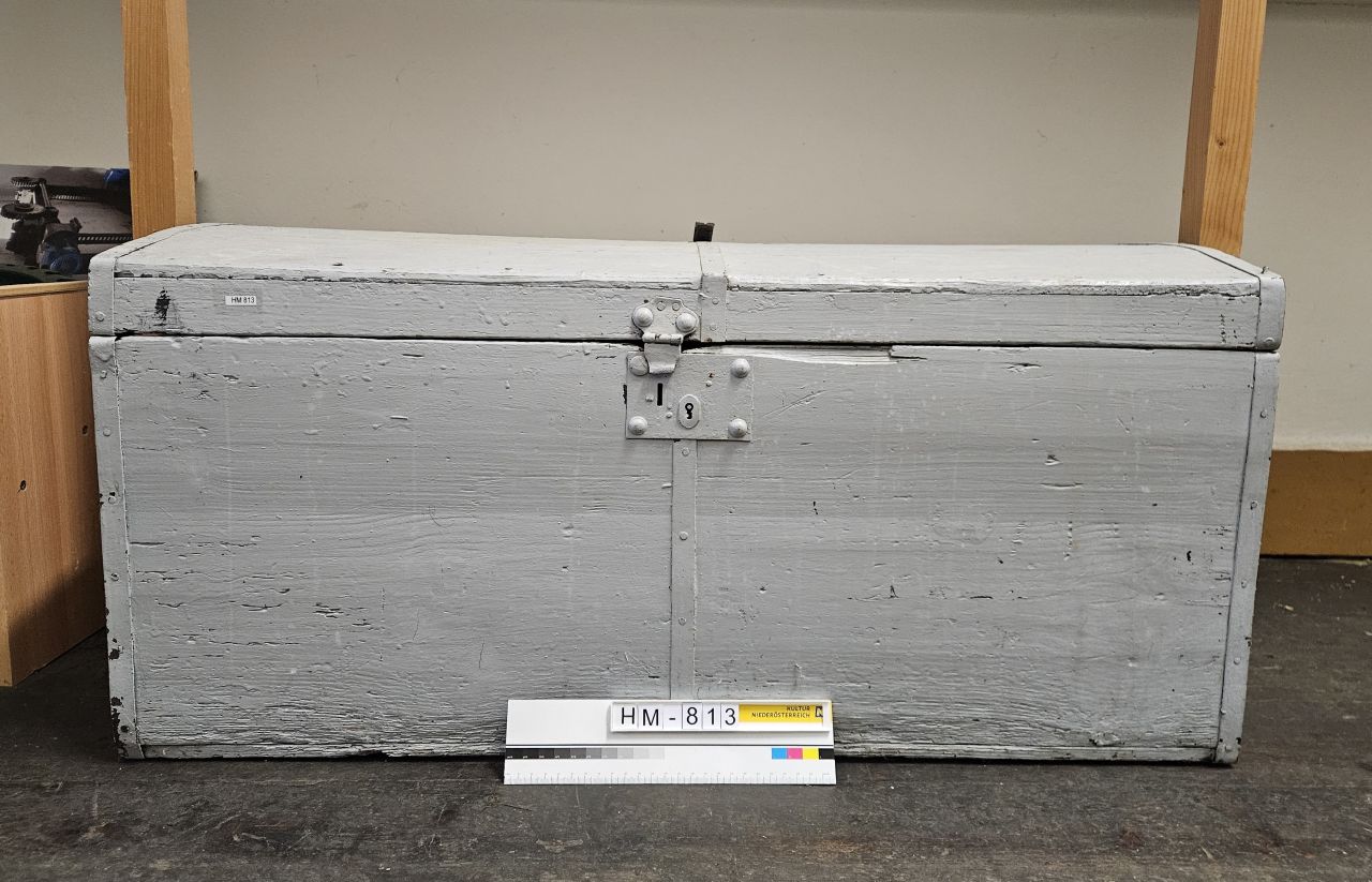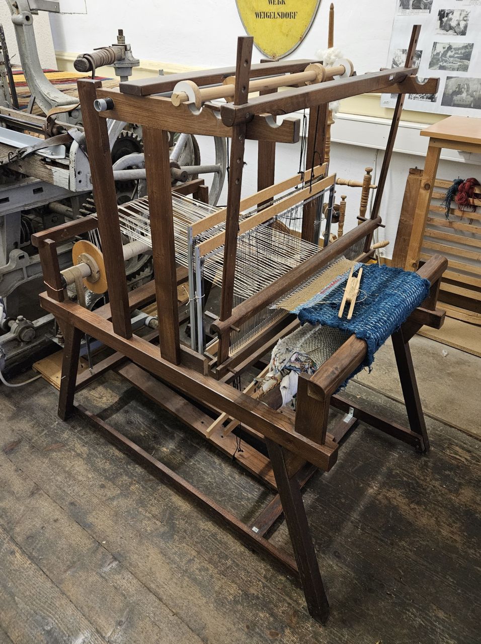 blau gefärbter Metallrahmen mit blauem Kunststoffhintergrund, mittig Stumpen-Form mit Blatt- und Blütenmuster