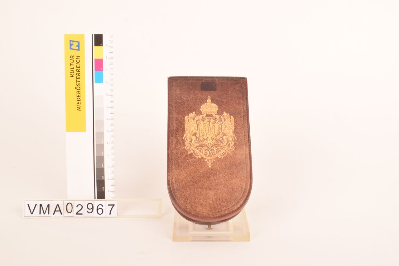 In violetter Schatulle, Prägung: Engel und Wappen mit Text: Erinnert einst im Flug der Jahre an deine Taufe dich dies heilige Bild, so denke dessen am Weihaltare empor auf seinem Arm dich hielt. Rückseite: Dieses ist mein lieber Sohn, an welchem ich Wohlgefallen hab Gott-Vater tauft Jesus, darüber Hl.Geist